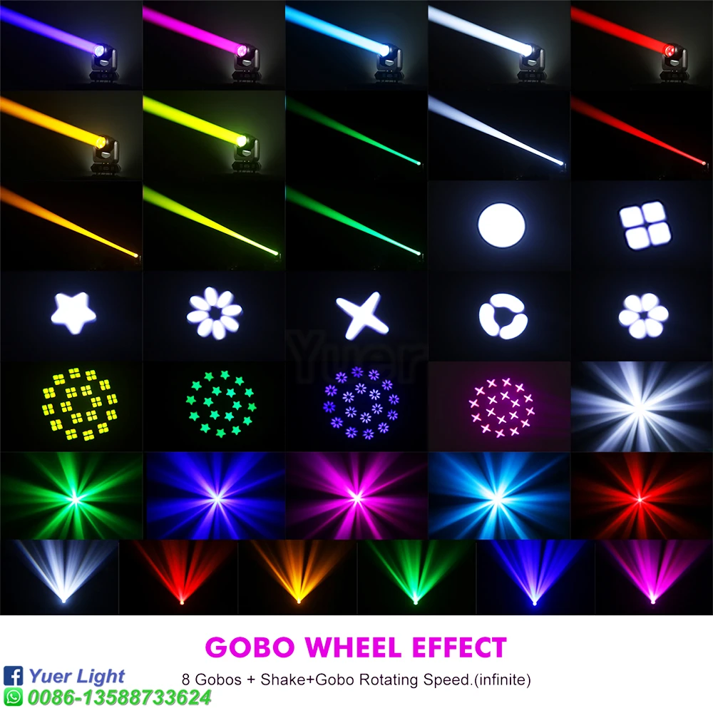 Gobo wheel: 8 gobos + shake+Gobo Rotating speed. infinite rotating
