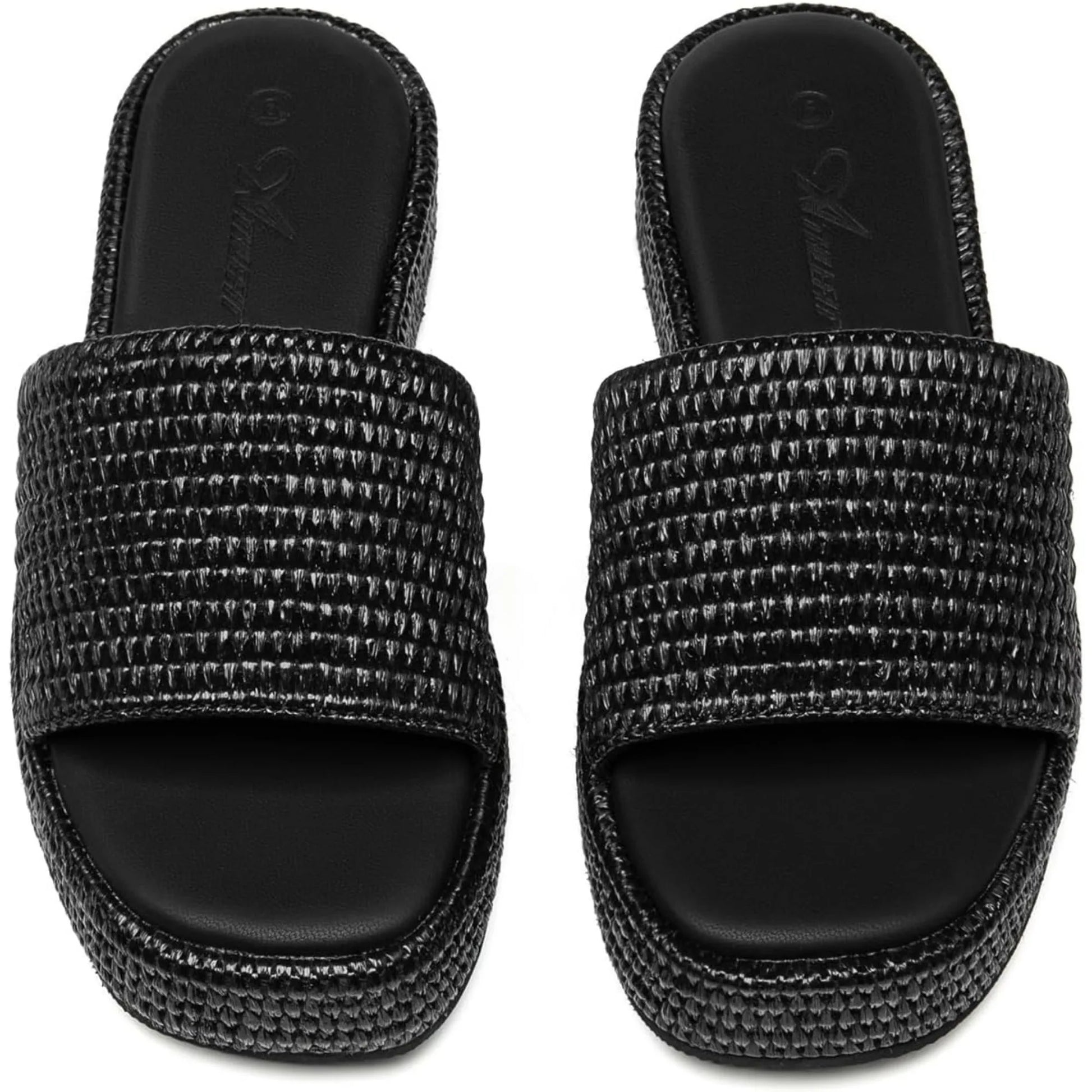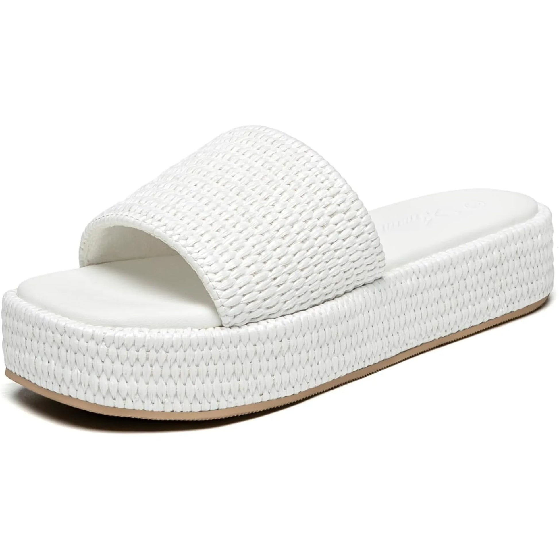 Athlefit Women's Platform Raffia Sandals Comfortable Open Toe Slip On Beach Slides Sandals for Summer Casual