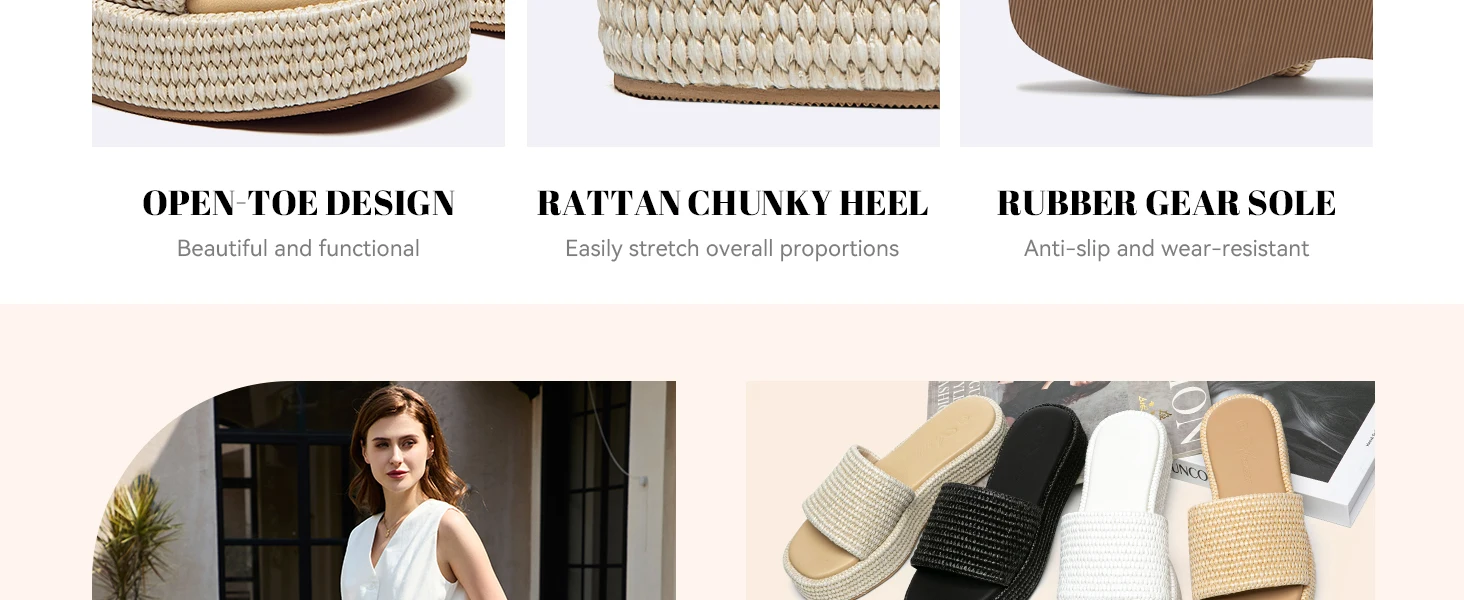 Braided Upper: These open-toe summer sandals are made of woven raffia materials that are durable and long-lasting. The soft lining is breathable and sweat-wicking, suitable for everyday wear in summer
