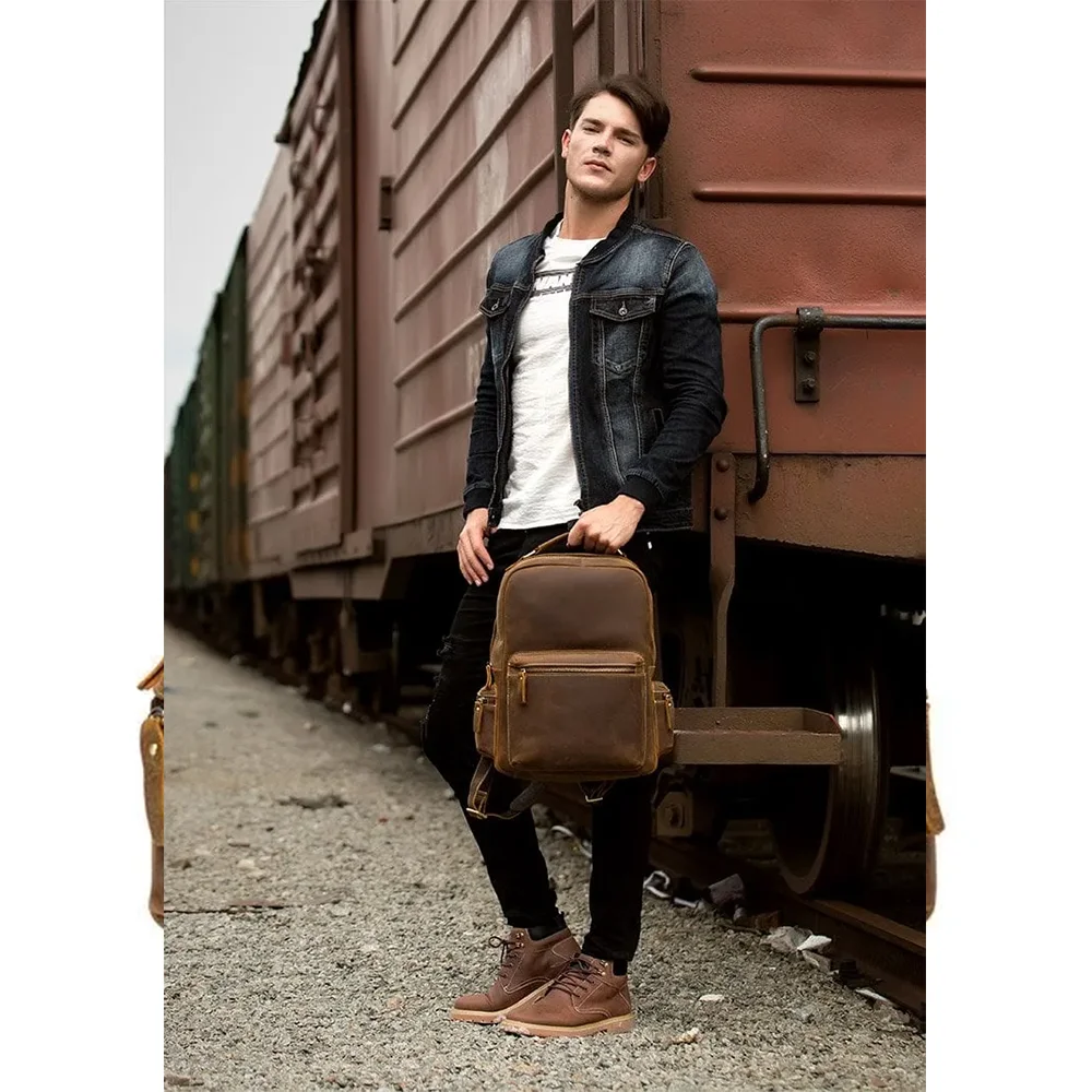 Backpack Genuine Vintage Leather Backpack Business Bag Vintage Cow Leather Travel Backpack Men Daypack School Bags