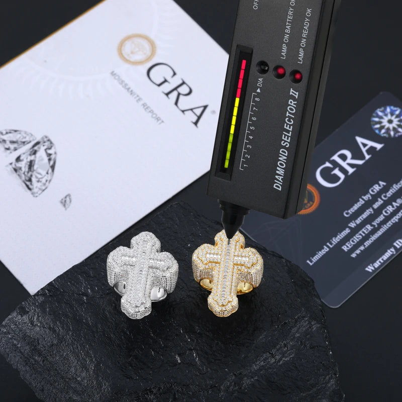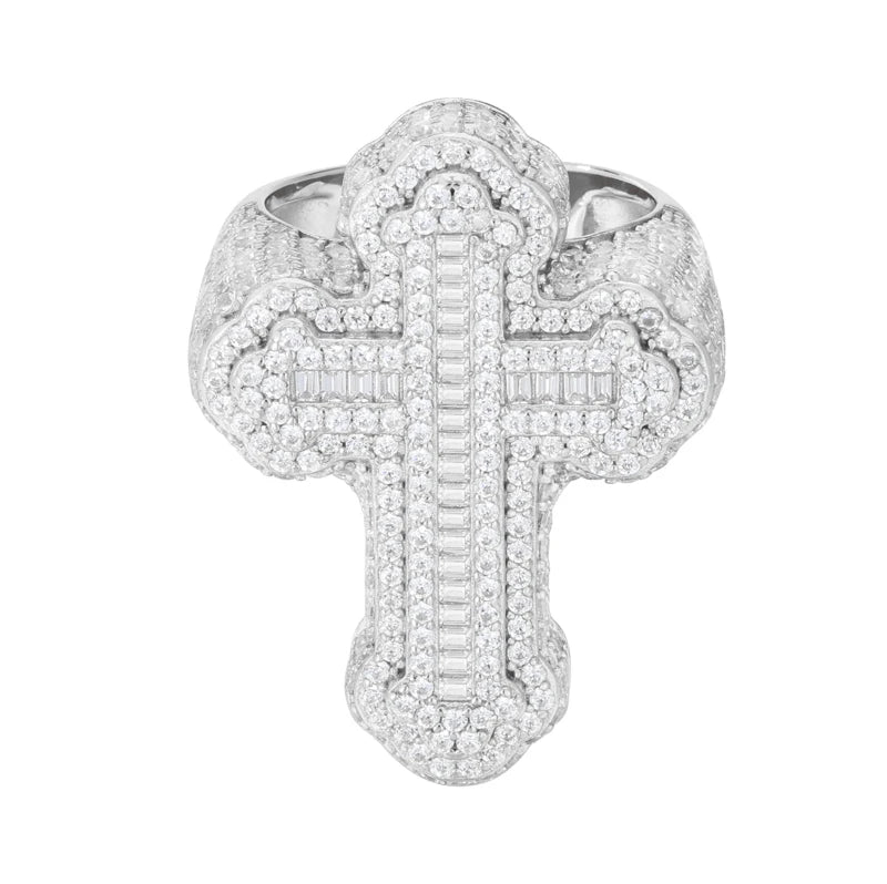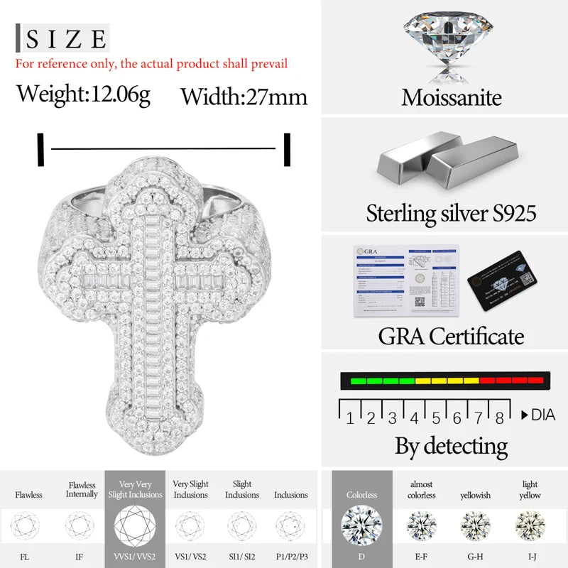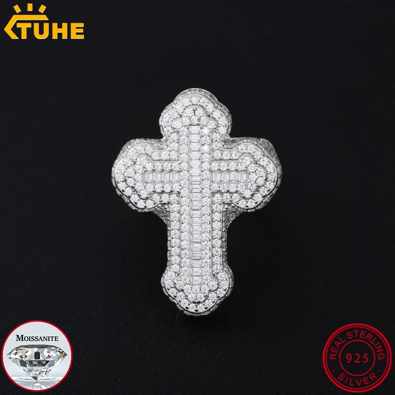 Baguette Cross Rings S925 Silver Moissanite Jewelry