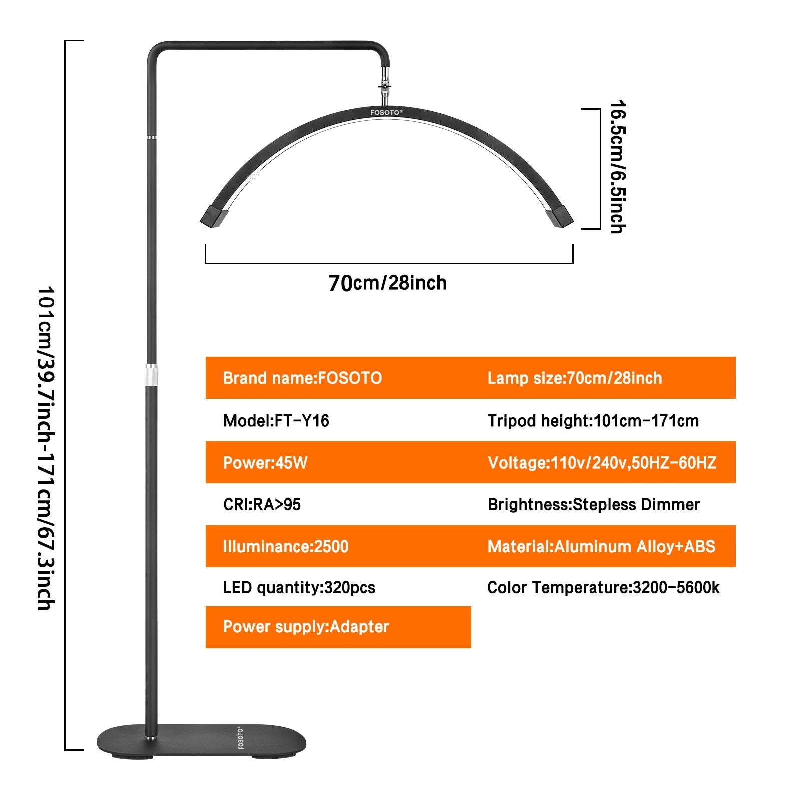【FOSOTO Upgraded Multifunctional Design】FOSOTO FT-Y16 features multifunctional angle design.Compared to traditional moon lamps, the lamp head can only illuminate downwards and can only be used for beauty purposes. This new design not only use for beauty salon, but also meets the needs of live streaming,makeup,photography,hair beauty ect. Specially designed for eyelash elongation artists, tattooists, beauticians, nail technicians, skincare professionals, as well as reading, threading, and handcrafting activities.Changing the angle allows you to choose the lighting angle that best suits you, giving you more function display opportunities than others traditional moon lamp
