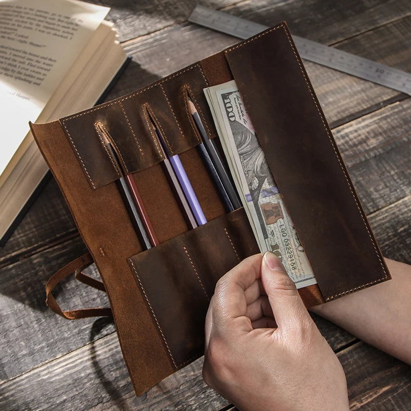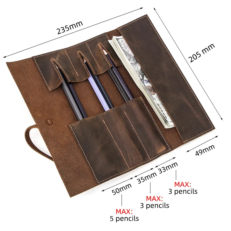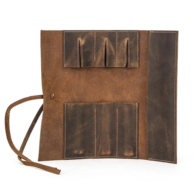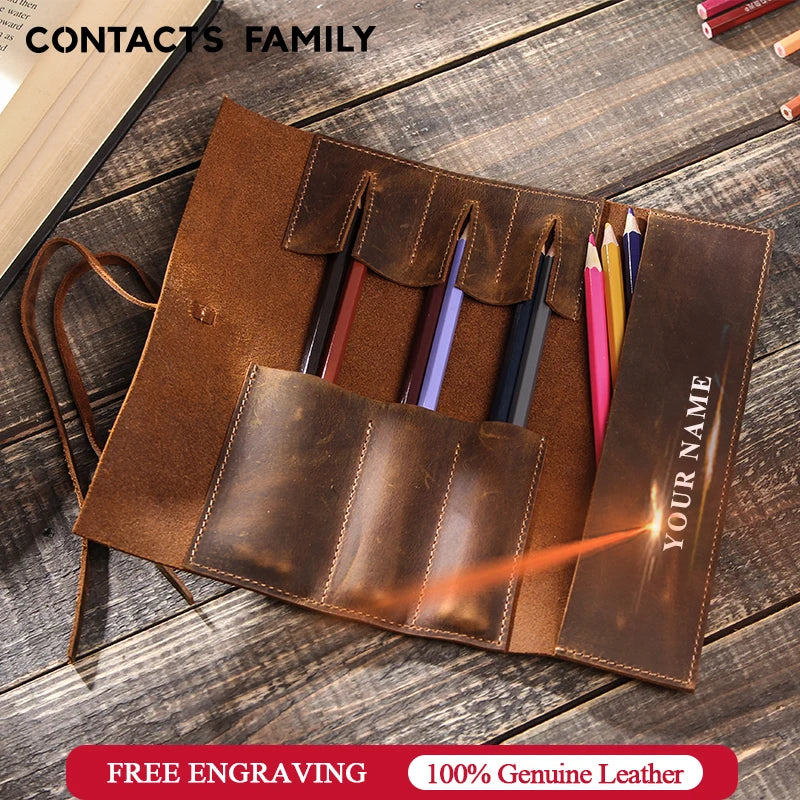 Genuine Leather Retro Luxury Pencil Roll Up Bag Pencil Case Storage Pouch Holder Boys Girls Student Stationery School Supplies