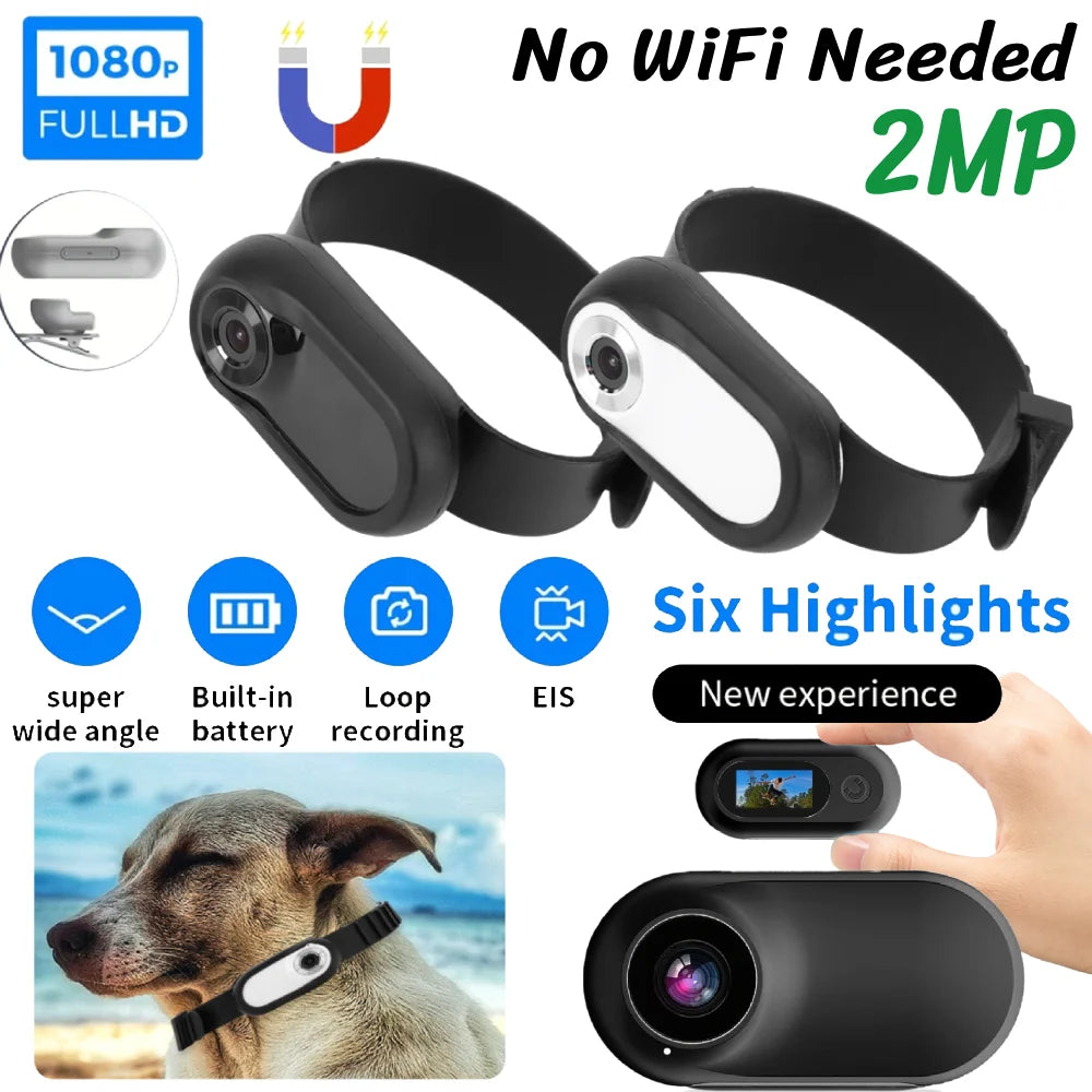 HD 1080P Wireless Collar Camera No WiFi Needed Dog Cat Pet Camera Collar Sport/Action Camera Video Records with 32G Card for Cats Dogs Birthday Gift