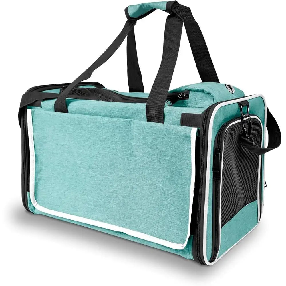 Large Pet Carrier Soft-sided Folding Dog Cat Travel Crate Easy Clean Mesh Ventilation Lightweight Portable Veterinarian Use