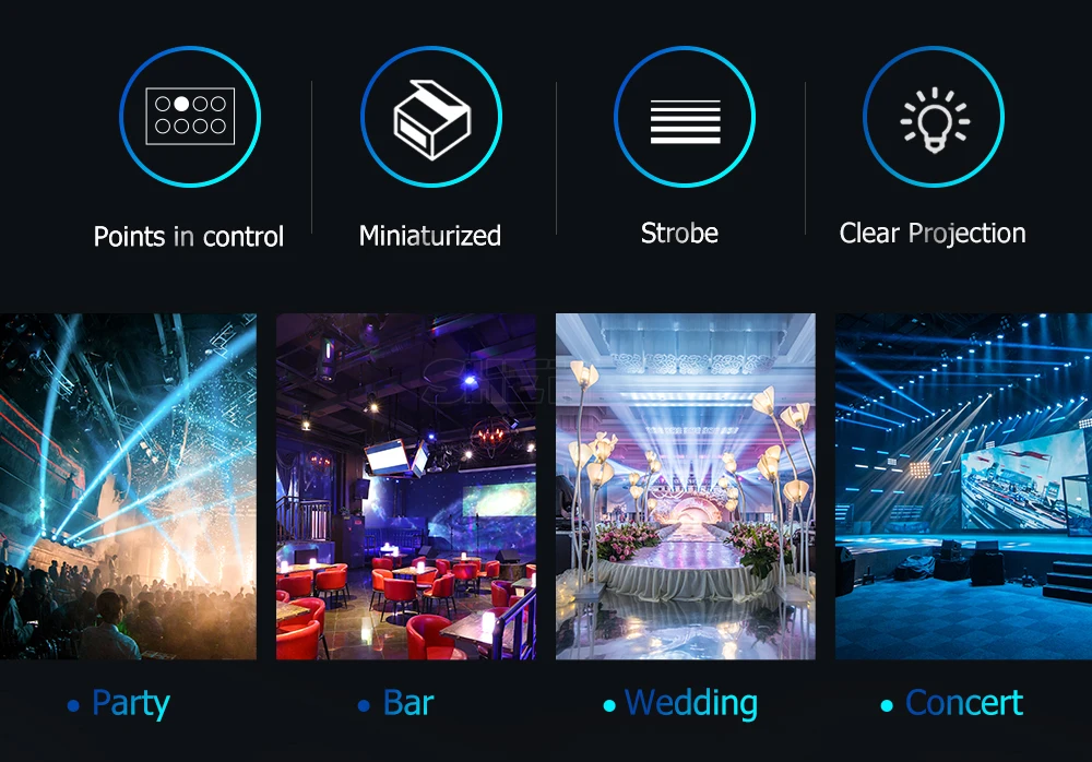 * Use of premises: Indoor,Stages, night clubs, Disco, Hotels, shops, family birthday party, Good for DJ