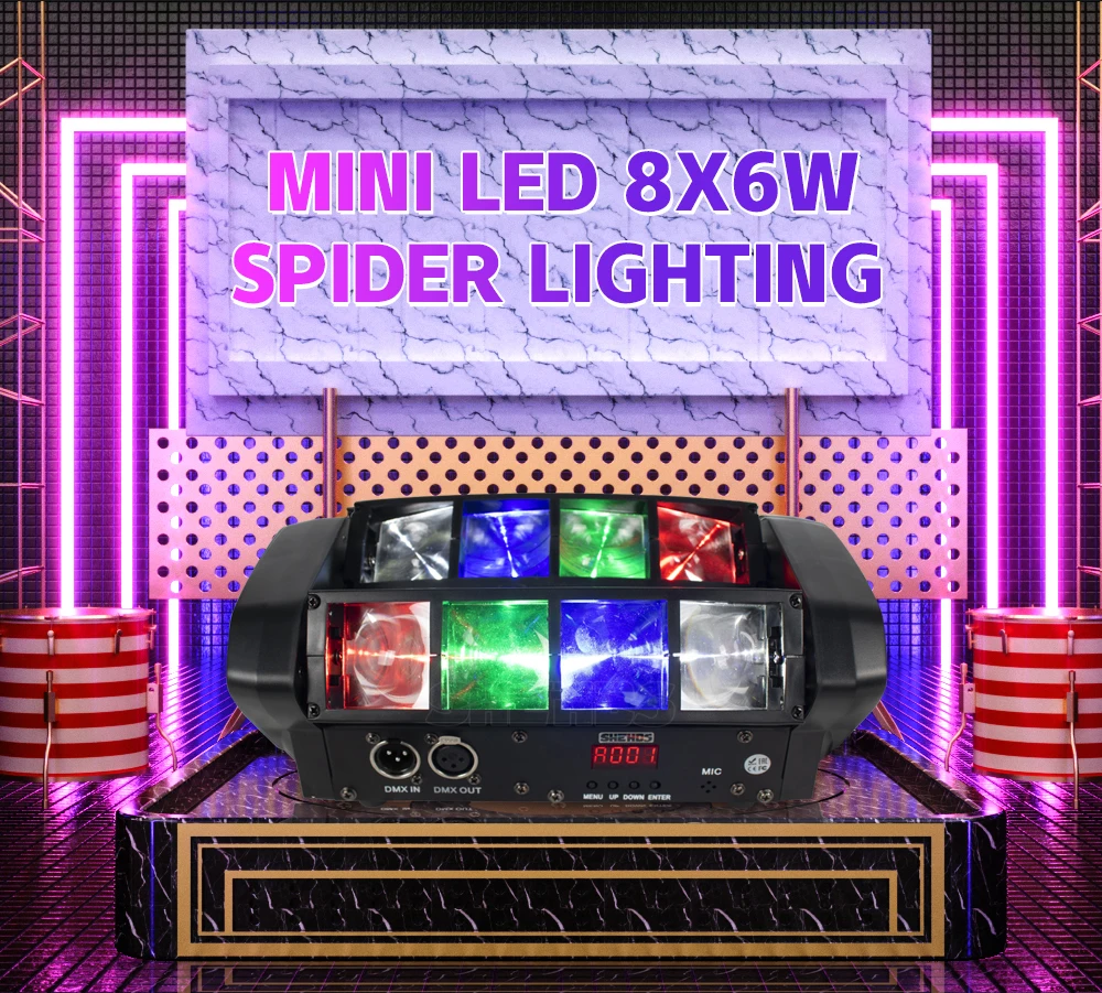 Mini LED 8X6W/9x10W Spider Light RGBW DMX512 Spider Moving Head Beam Light Used In DJ Disco Bar KTV Stage Lighting SHEHDS