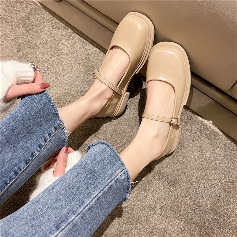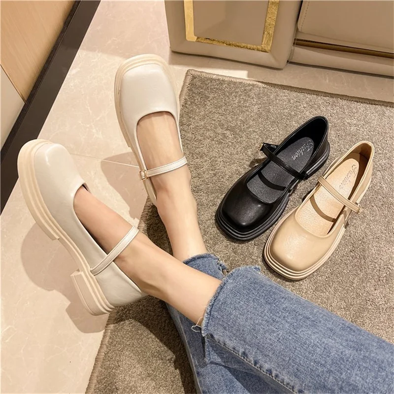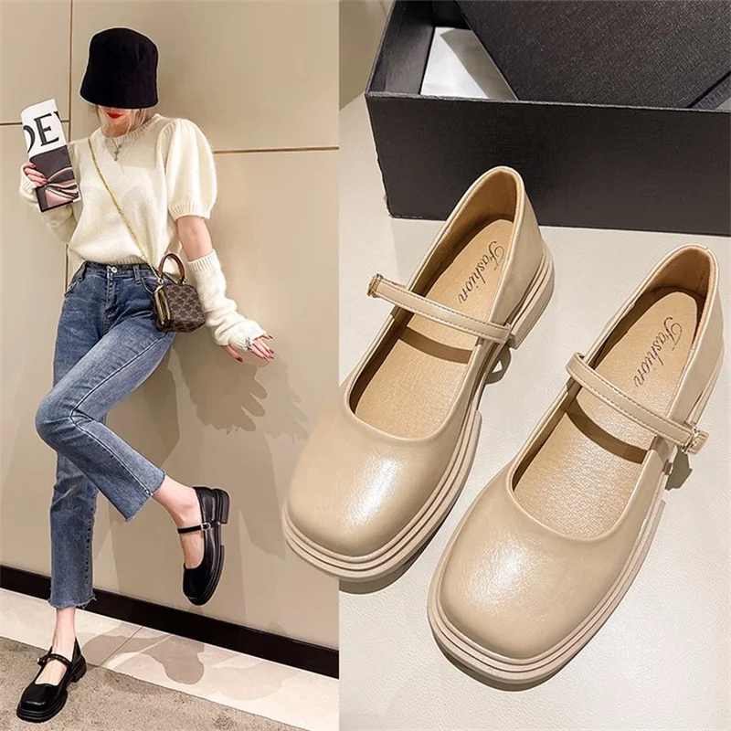 Oulylan Soft Soles Women Shoe Comfortable Thick Soled Leather Shoes Women Spring Autumn New 2024 British Style Shoes for Women