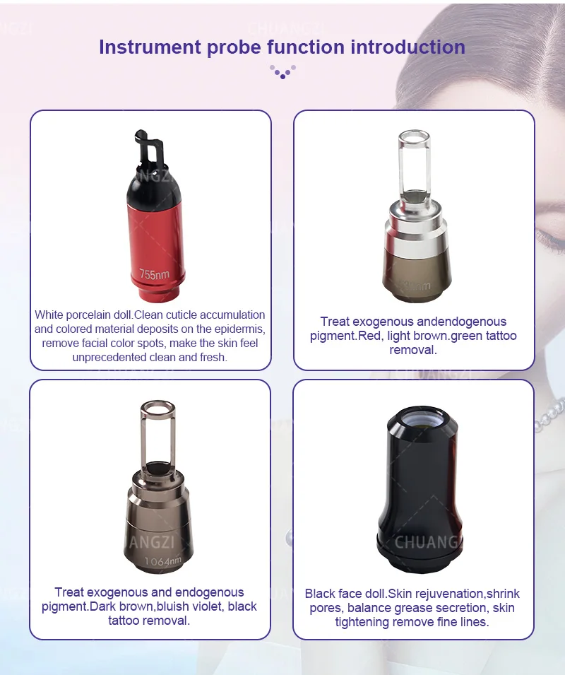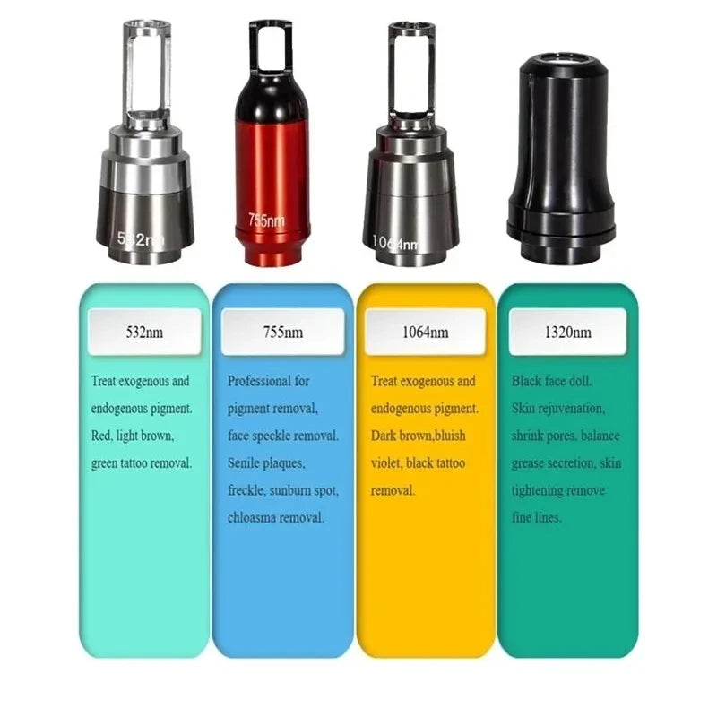 4 High power handpiece, strong output energy, 532nm,1064nm and 1320nm(black doll heads)Non -invasive 1064nm head,Non -invasive