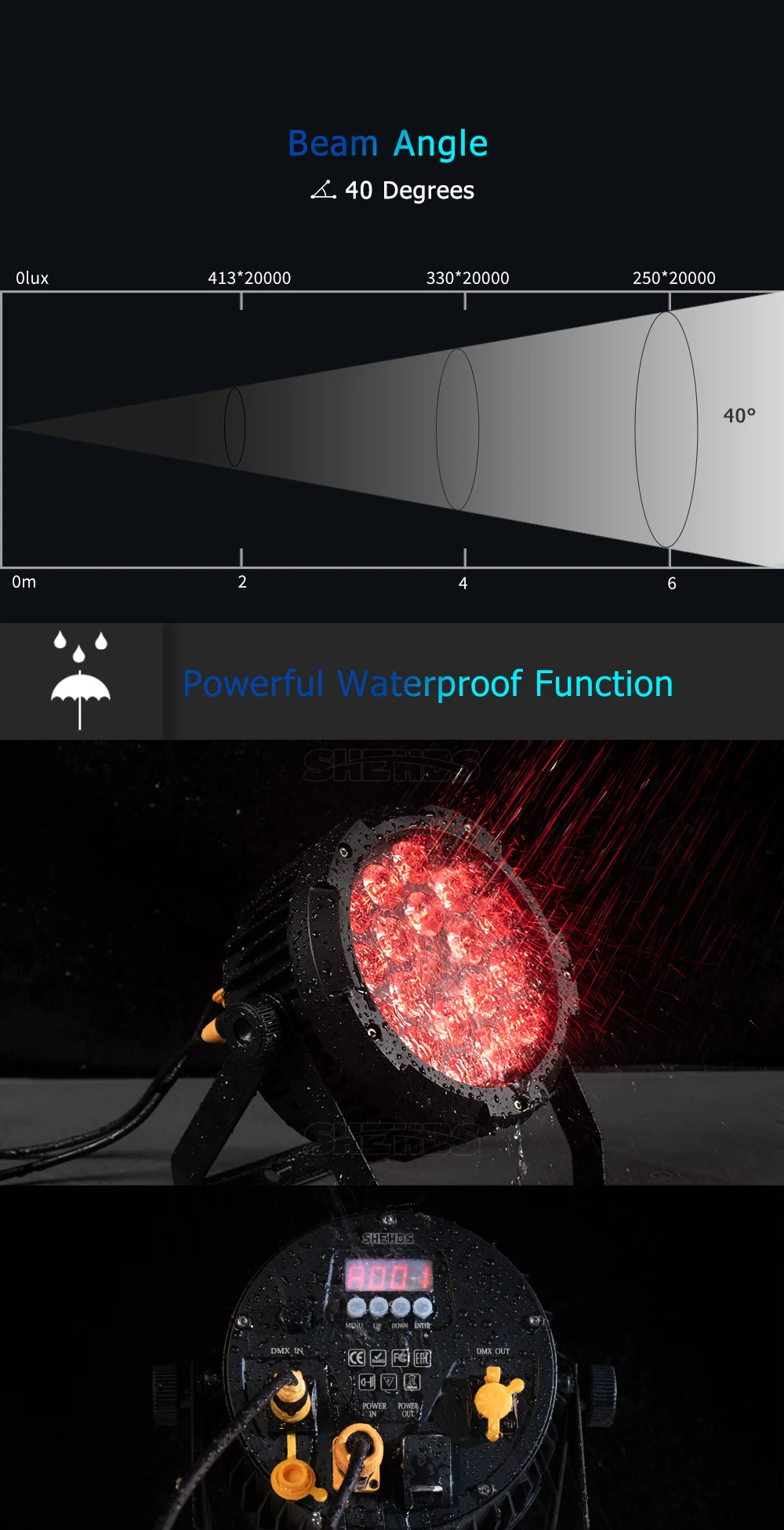 9.Control Modes:DMX512,Auto Run,Sound Action,Strobe,Stand Alone and Master/Slave,With Rich Advanced Built-in Program