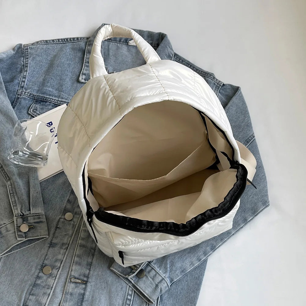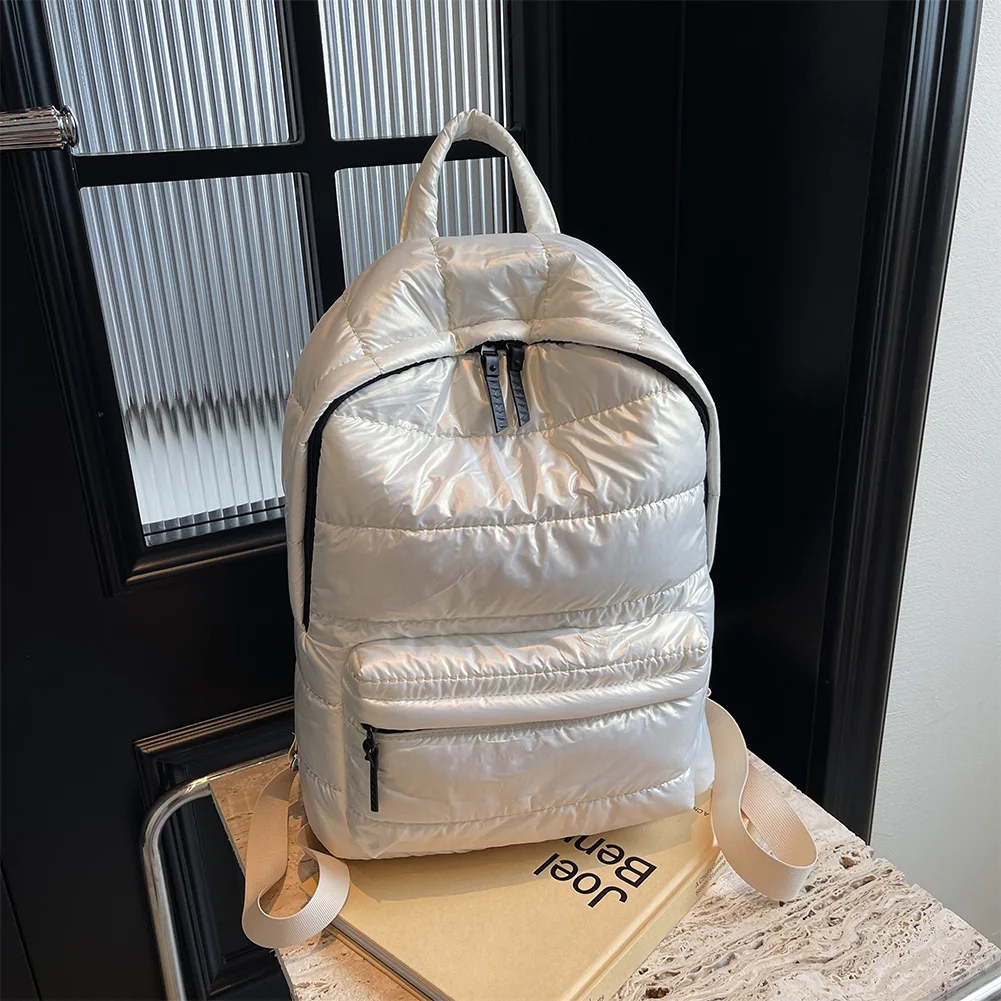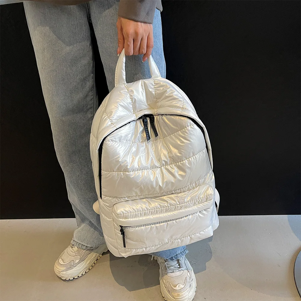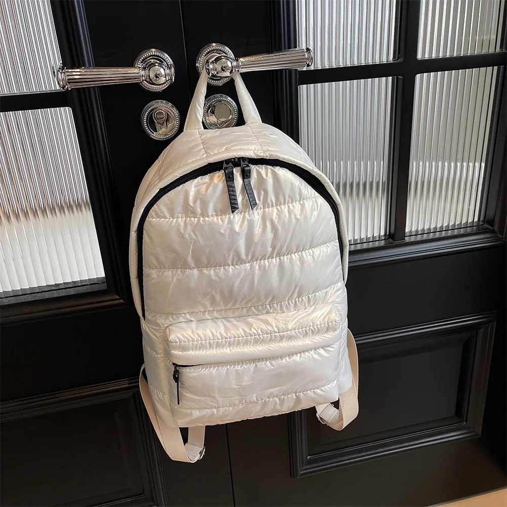 Solid Down Knapsack Large Capacity Quilted Backpack Teen Student Schoolbag Multi-pocket Rucksack Puffer Cotton Versatile Bookbag