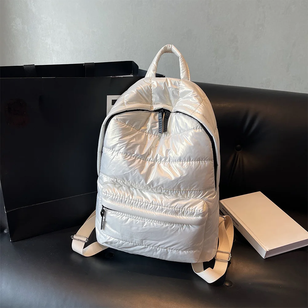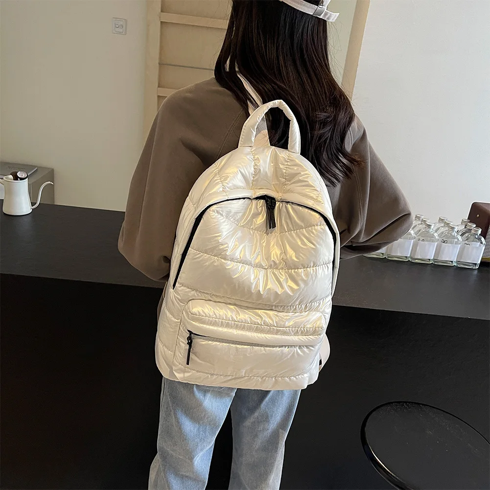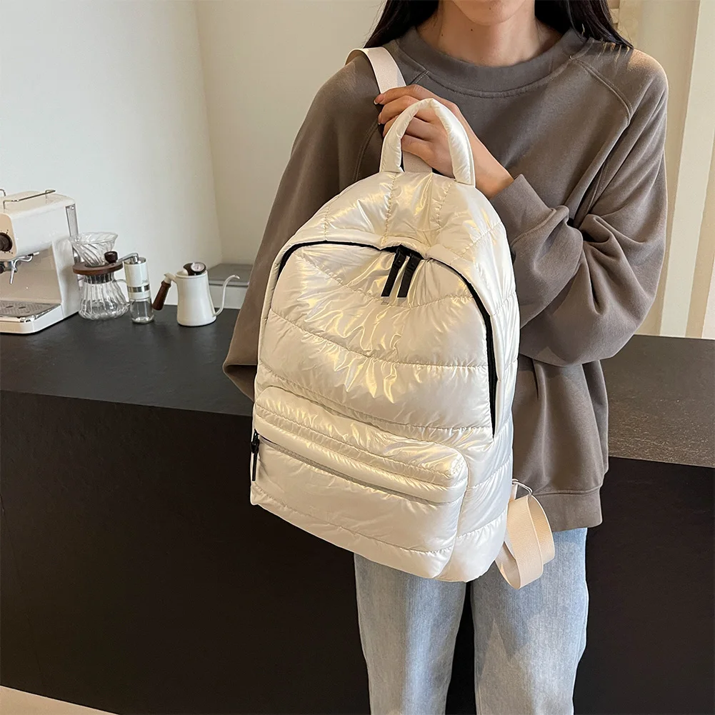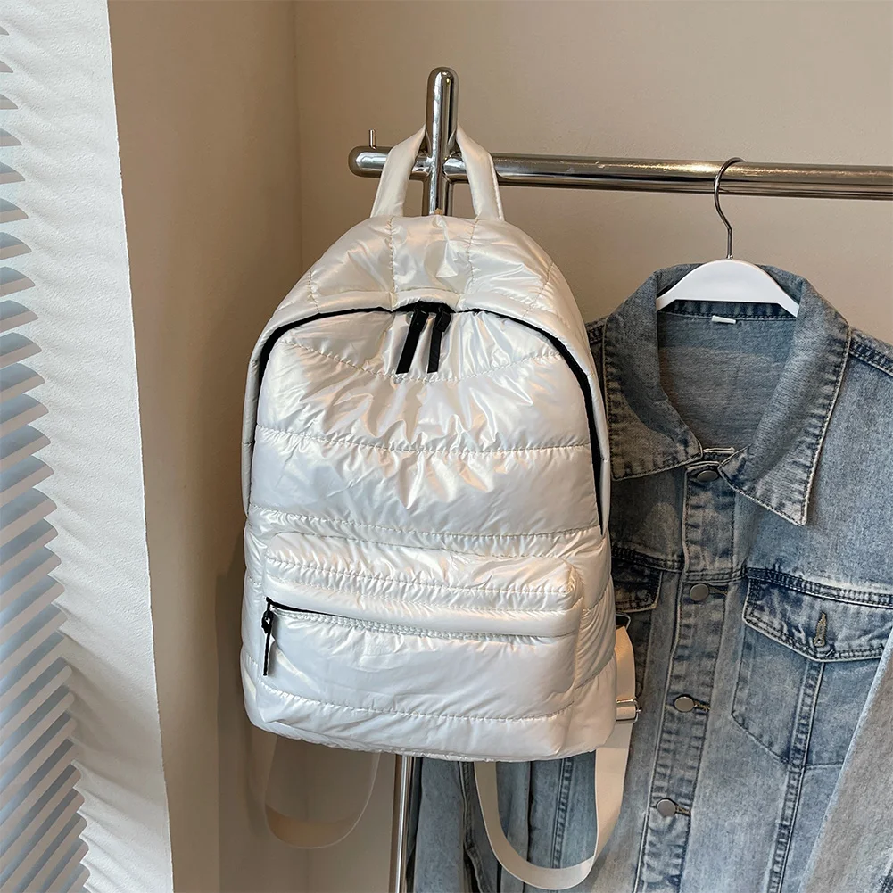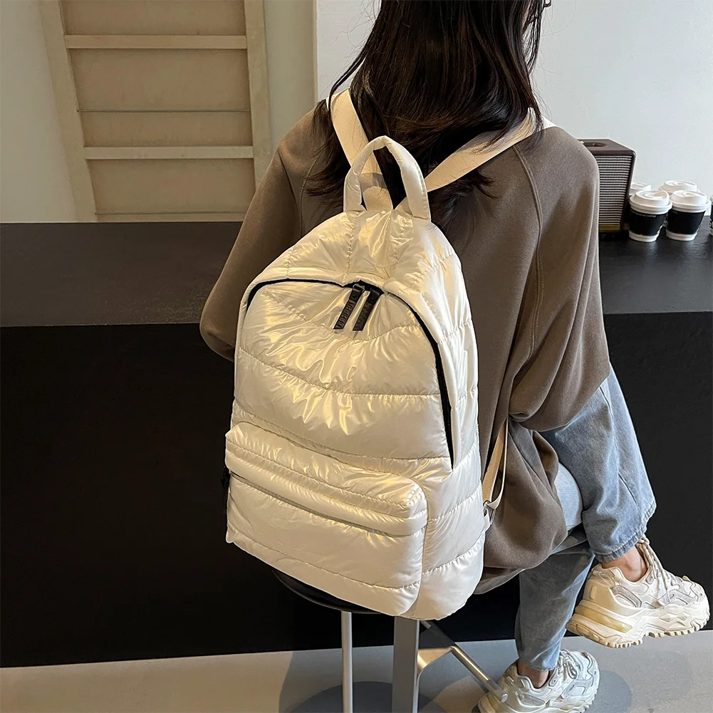 Solid Down Knapsack Large Capacity Quilted Backpack Teen Student Schoolbag Multi-pocket Rucksack Puffer Cotton Versatile Bookbag