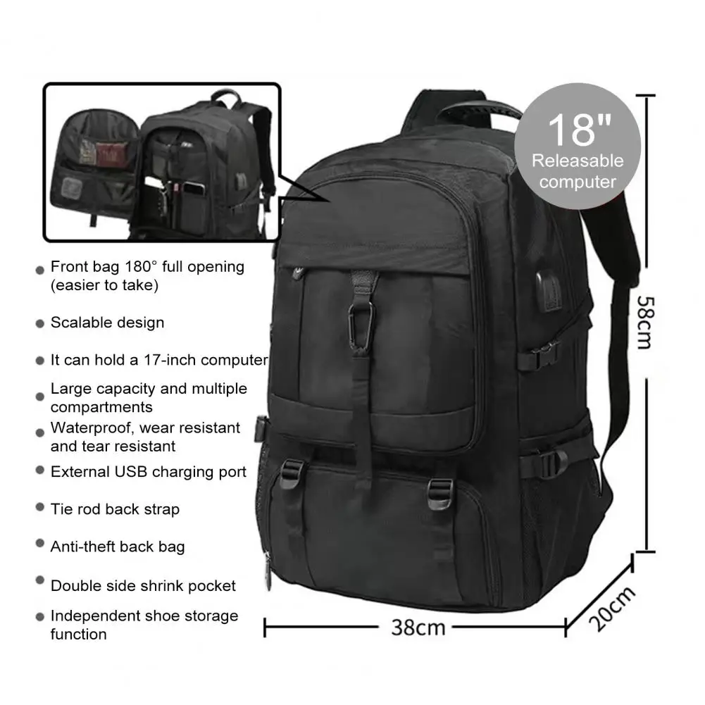 50/80L Backpack USB Charging Port Large Capacity Multi Pockets Adjustable Shoulder Strap Waterproof College Backpack Bag Hiking Business Daypack