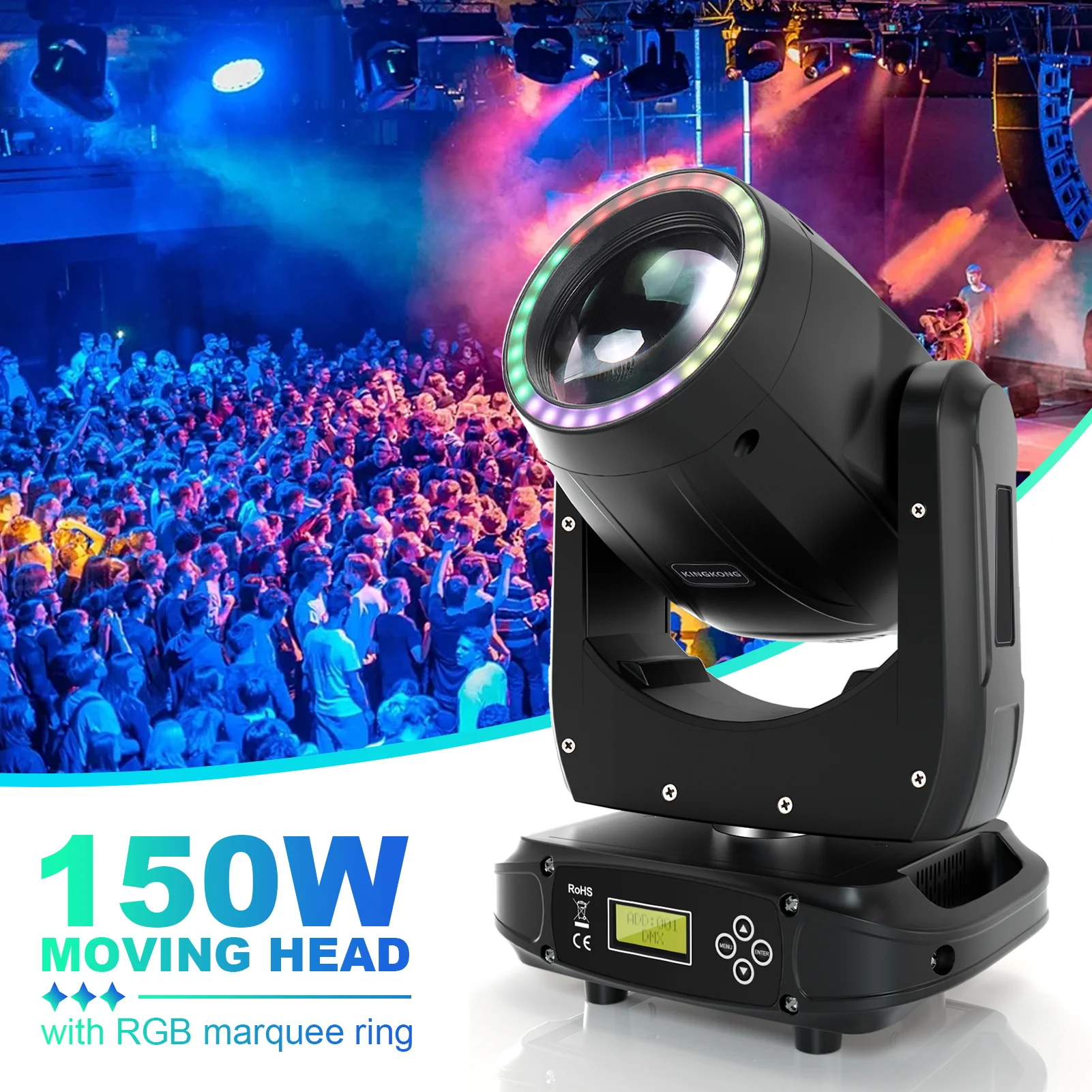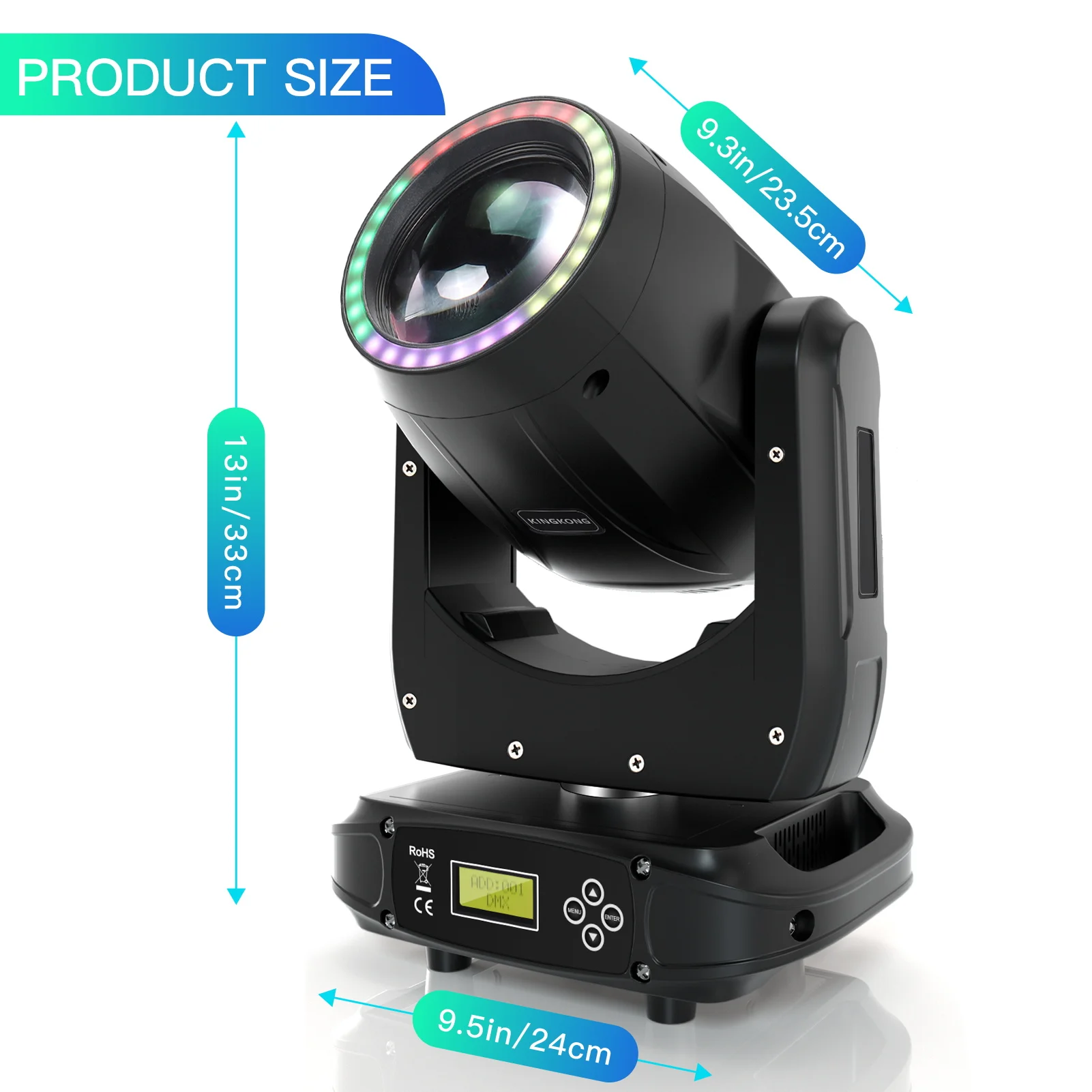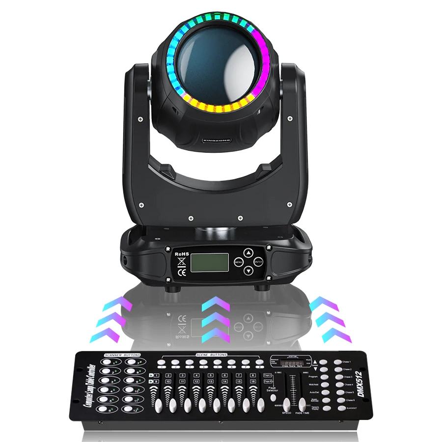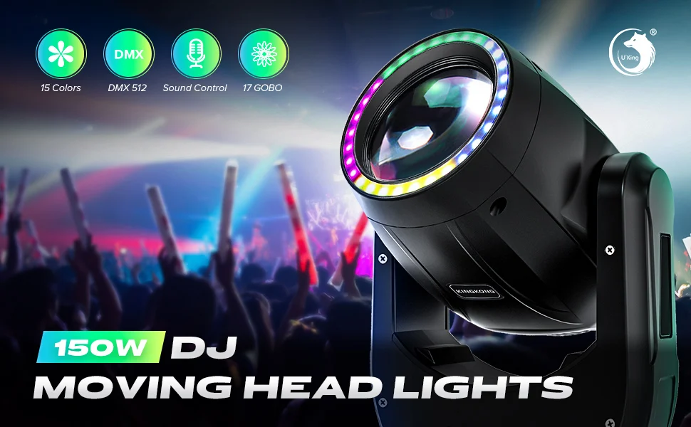U`King 180W Moving Head Light RGB 3IN1 LED Rainbow Lighting Effect 8 Prisms Stage Lights DMX512 Sound Activated For DJ Disco KTV