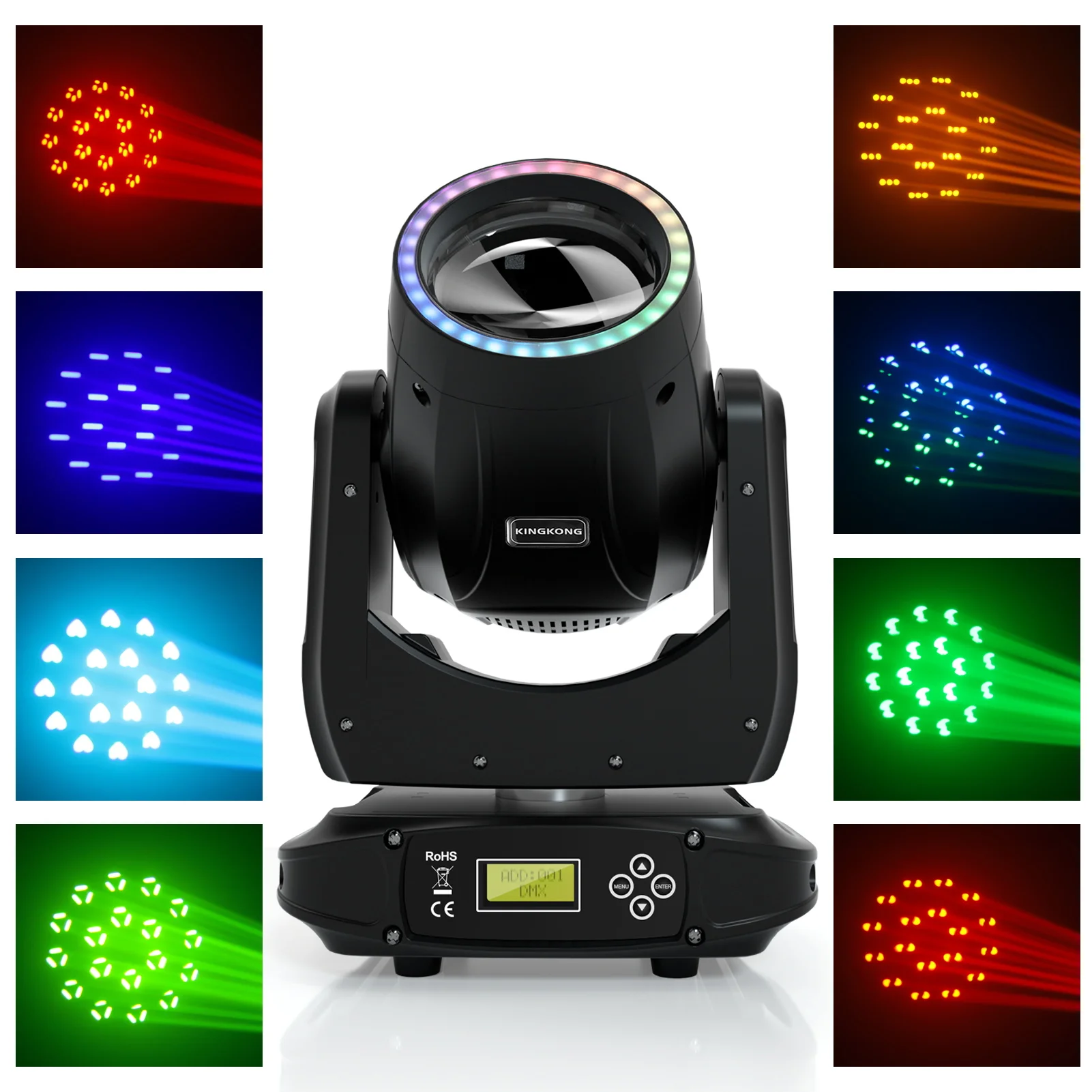 1.The main light source uses a 1 * 100W white light bead, 15 gobos and 13 colors, bright and colorful. This combination will give you a different visual experience.