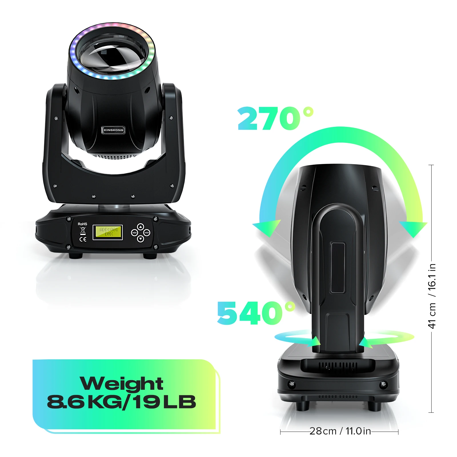2. Moving DJ lights for parties, X-axis rotatable 540° pan and Y-axis rotatable 270° Tilt for continuous pan and tilt movements.