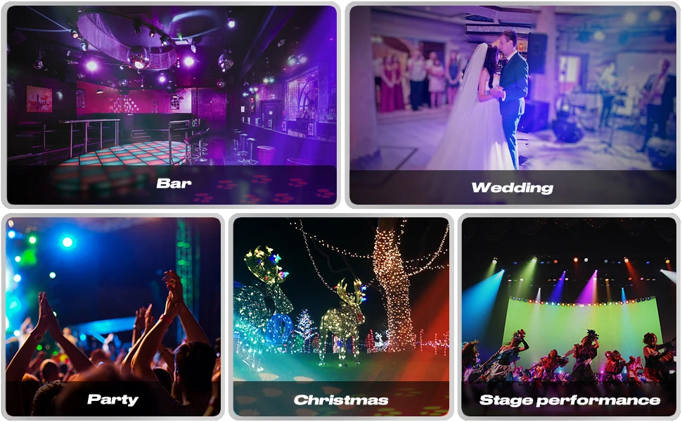 5.Colorful stage effect for DJ, ballroom, KTV, party, disco, theater, wedding, church, bar, special event, Halloween, Christmas, home party lighting.