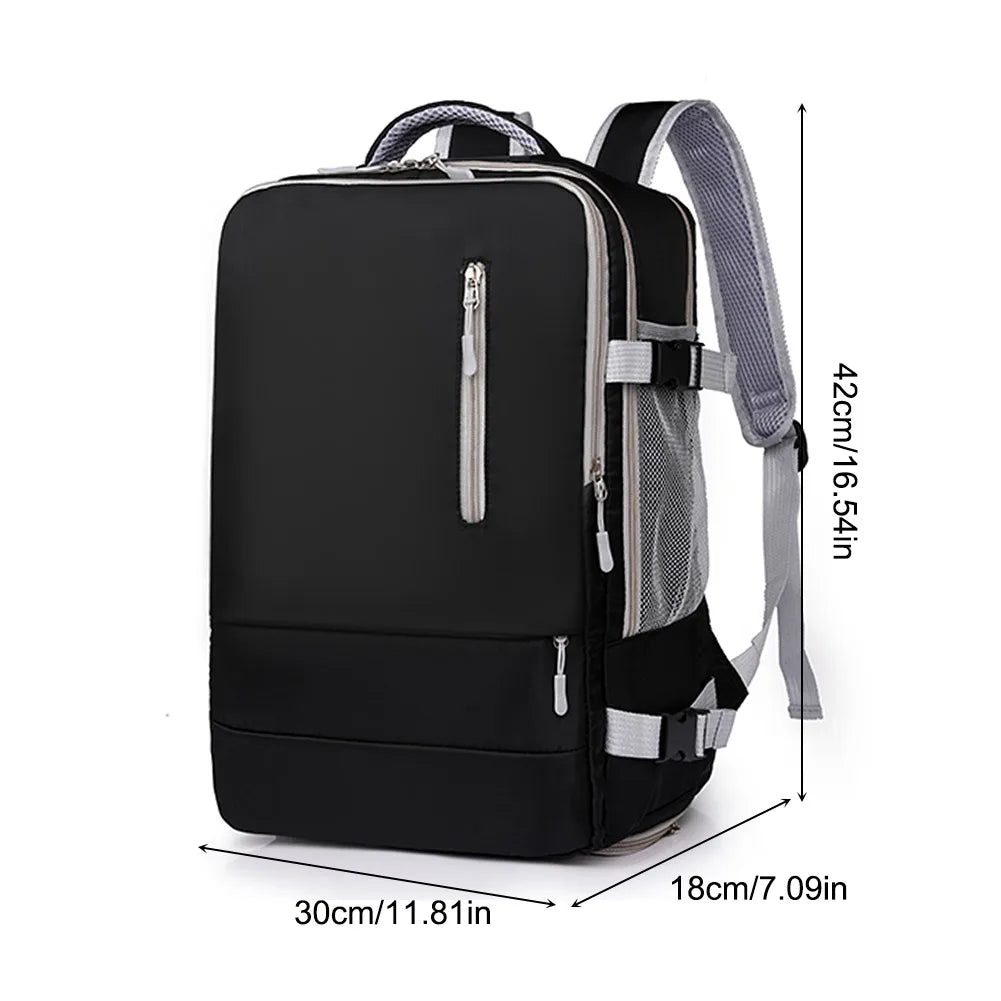1.Versatile Travel Backpack: This outdoor travel backpack is designed to meet various needs, whether for travel, daily use, or as a diaper bag. It features separate compartments for shoes, shockproof laptop storage, and a wet/dry separation pocket. The backpack offers a fashionable and functional solution for travelers. It can be used as a stylish travel backpack, a practical diaper bag, or a reliable companion for everyday adventures.With its independent shoe compartment, shockproof laptop storage, and wet/dry separation pocket, this backpack efficiently organizes your belongings, keeping them tidy and accessible on the go.